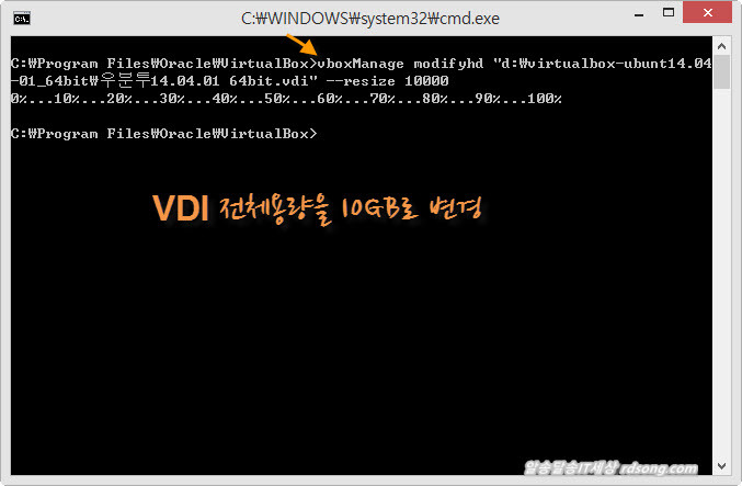 VBoxManage.exe 사용법, 버추얼 박스 가상하드이미지 용량/사이즈 늘리기