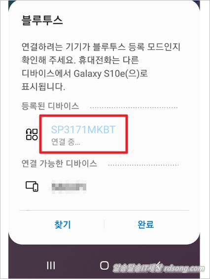 [ 등록된 디바이스 ] 이미 추가 된 상태이며, 블루투스 연결 해 놓은 상태 입니다.