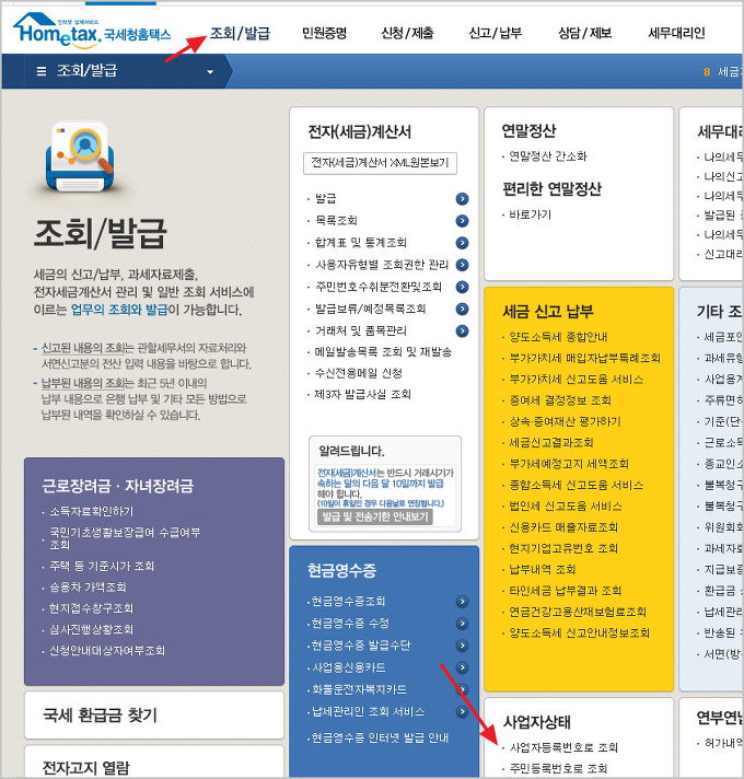 홈택스 사업자 등록번호 조회하는 방법은 국세청 홈택스에 가면 있다