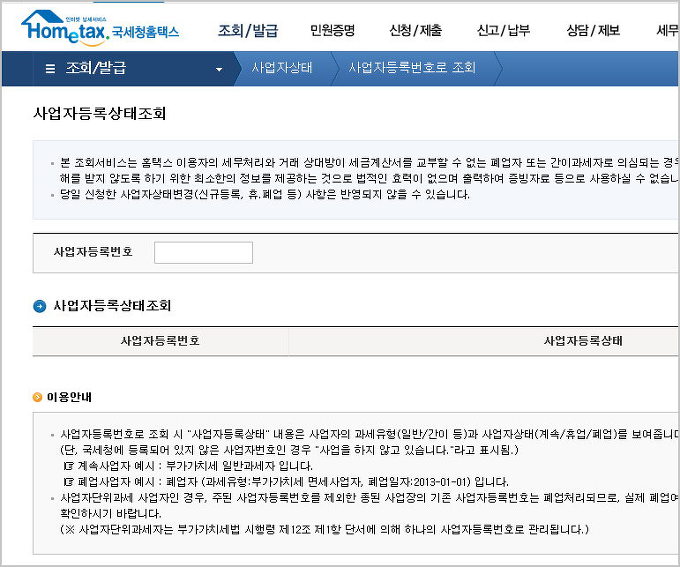 국세청 사업자 등록번호 조회 시 로그인 필요 없이 가능하다