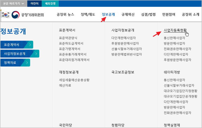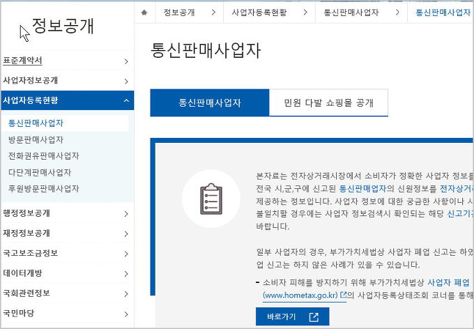 2. 공정거래 위원회 홈페이지 통신판매사업자 등록 번호 조회