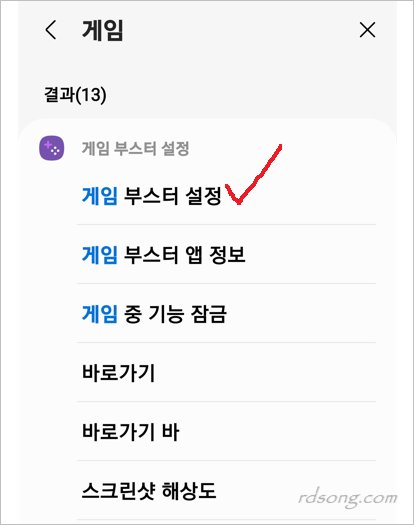 애플리케이션 들어가서 게임 부스터 설정 검색 하면 , [ 게임부스터 설정 ] 처음에 뜨지 않는데, 앱목록 > 필터 아이콘 터치 하여