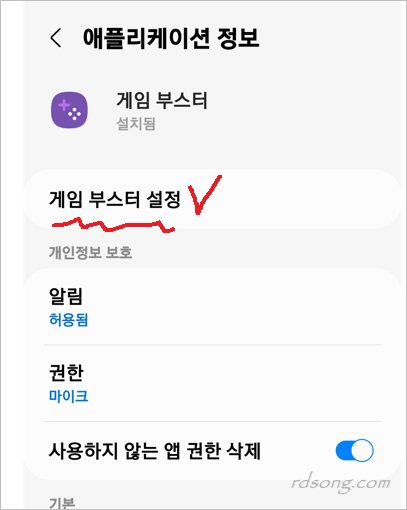 핸드폰 설정에서 검색 하거나 애플리케이션 터치 하여 게임부스터 설정 찾아야 합니다.