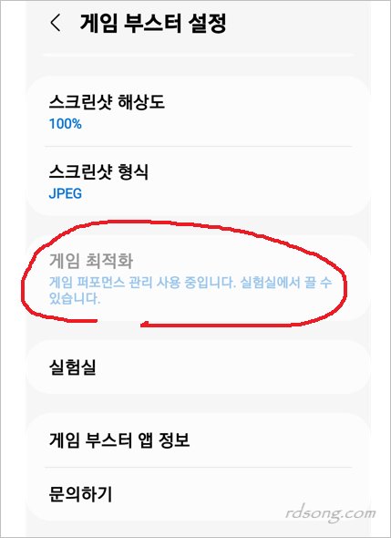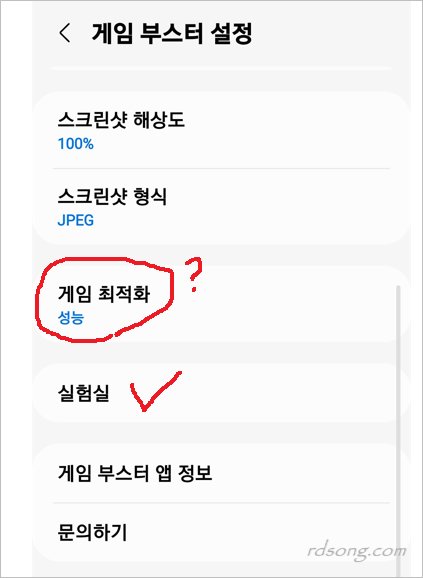 갤럭시 GOS ( game optimizing service)  끄기 : 게임부스터 설정 – 실험실
