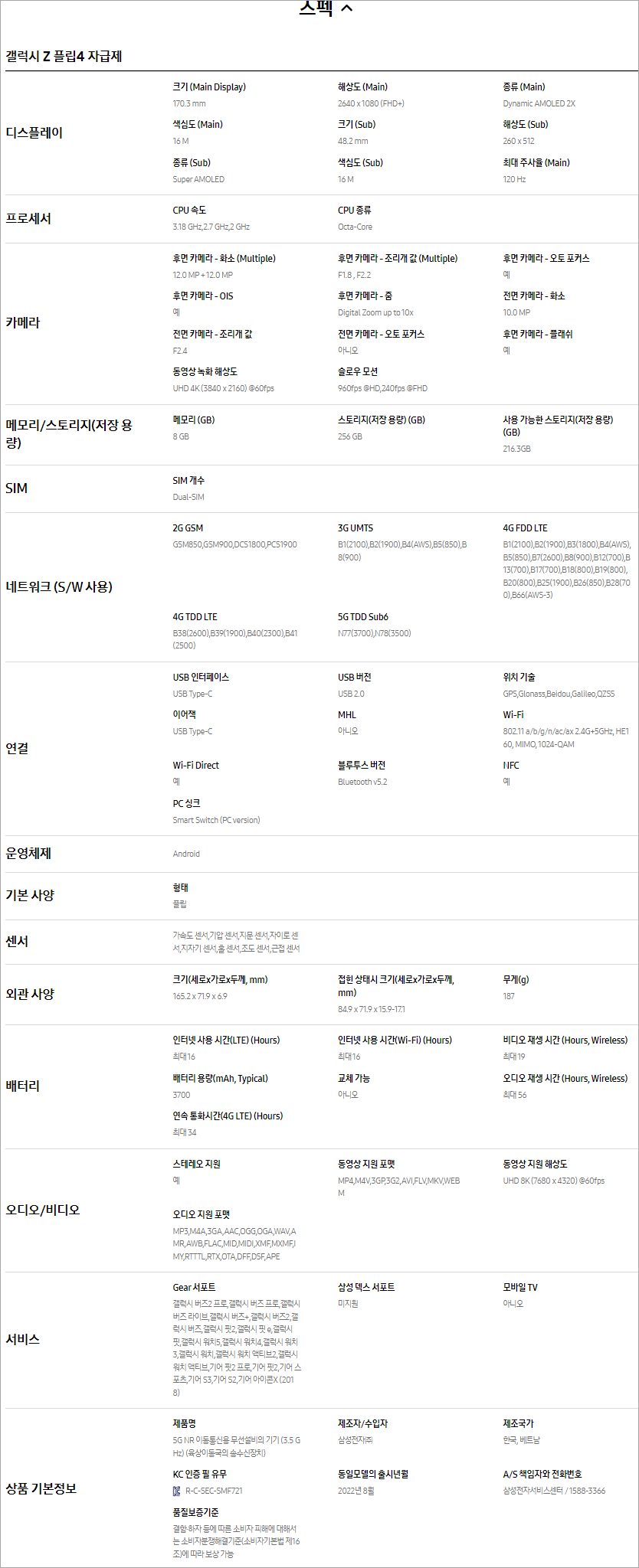 z플립4 자급제 좀더 자세히 보려면 아래  갤럭시 z플립4 스펙 잘 살펴 보세요
