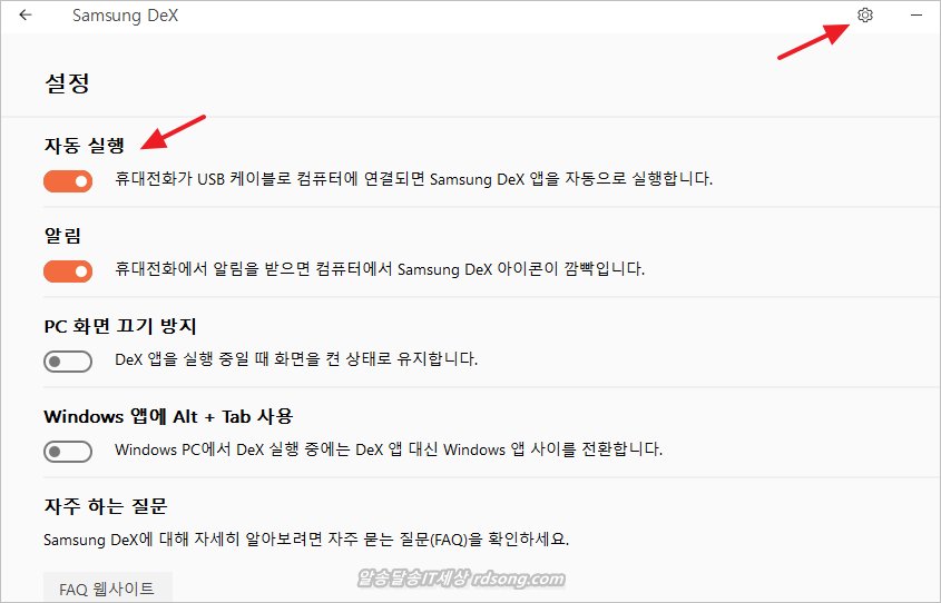 설정 > 자동실행 : 휴대전화가 usb케이블로 컴퓨터PC 연결되면, 삼성 덱스 dex 앱 자동 실행 옵션은 쓰는 사람 맘대로 켜두거나 끄면 됩니다.
