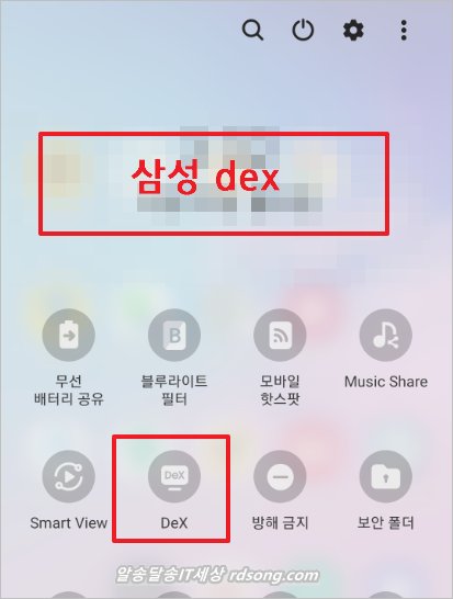 안드로이드11 사용하고 있으며 , 핸드폰 상단의 빠른알림창에 Dex 있습니다 한번 터치를 해 봅니다.