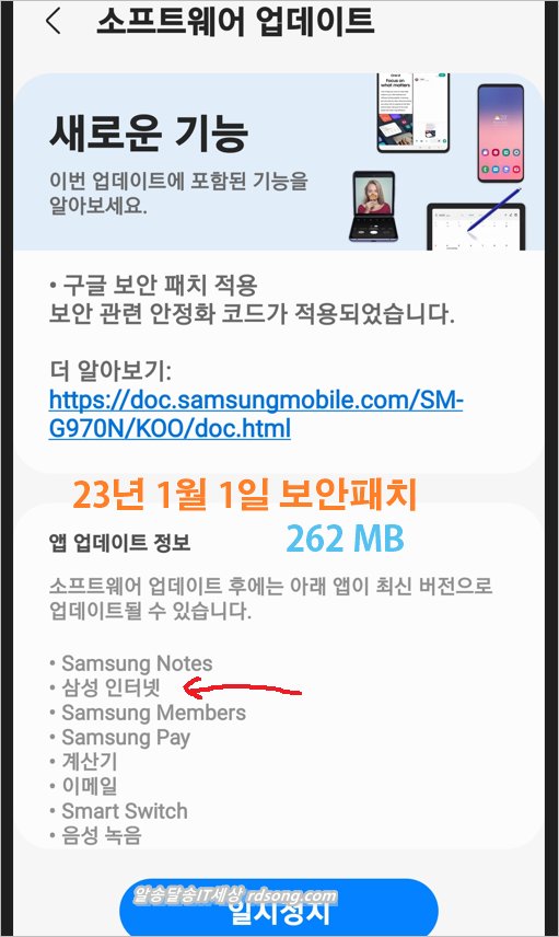 삼성 인터넷, 핸드폰 갤럭시 소프트웨어 업데이트 있었습니다.