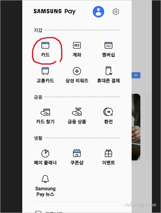 삼성 페이 열어 보면 좌측 메뉴 아이콘 터치 하면