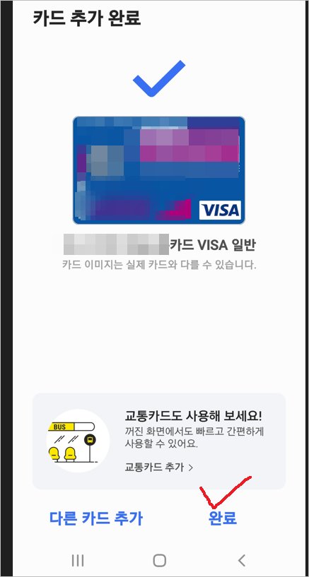 그러면 삼성 페이 카드 추가 완료 되어 집니다.