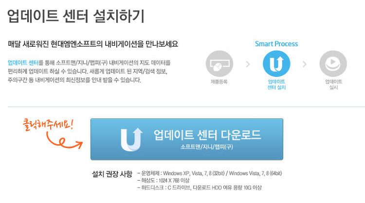 현대 엠엔소프트 홈피(http://www.hyundai-mnsoft.com/)에 로그인 후 ‘업데이트 센터’를 다운로드