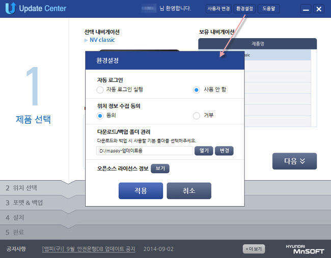 새로운 맵피 네비게이션 업데이트 프로그램: 업데이트 센터(update Center)