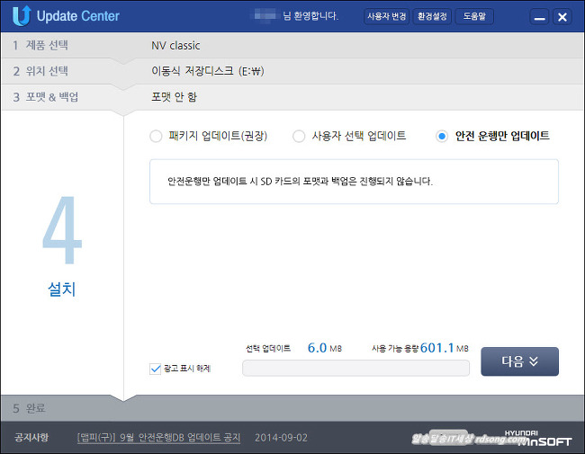 안전운행만 업데이트 시도를 해 봤는데 에러 없이 잘 완료가 되었고