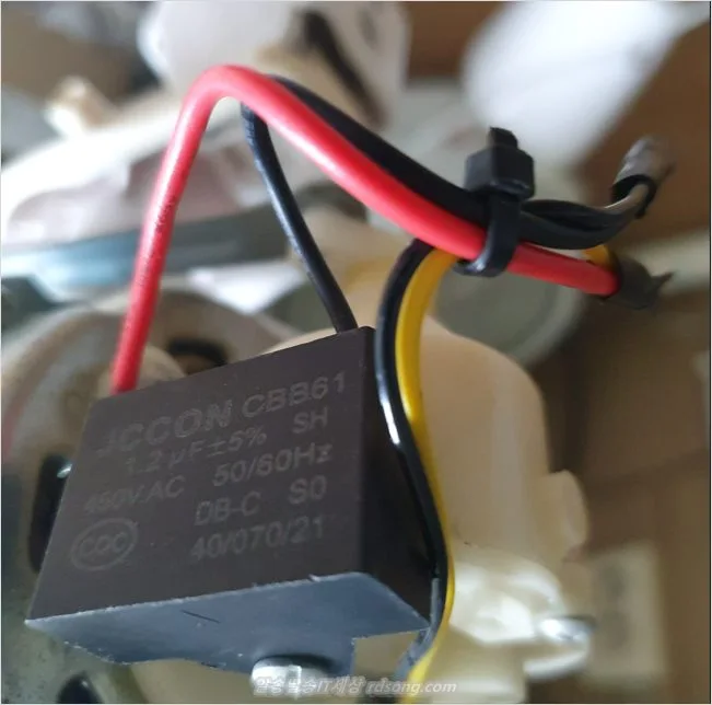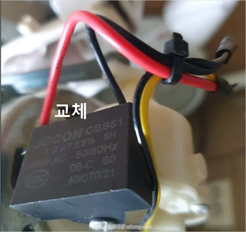 기존 선풍기 콘덴서 제거 해 줍니다. 그런 다음 새 선풍기 콘덴서 교체 해 주면 됩니다.