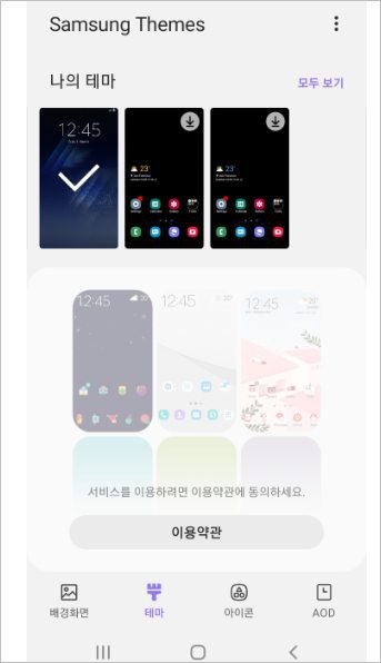 테마 서비스를 이용하려면 삼성 이용약관에 동의를 해 줘야 합니다
