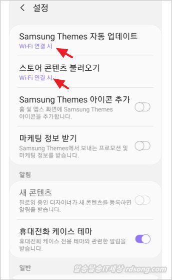 삼성 테마 , 배경화면 samsung themes 자동 업데이트 설정 :