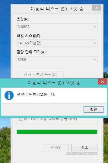 빠른포멧은 체크해제 하고 일반모드로 포멧 시간이 걸리지만 이방법이 더 확실합니다