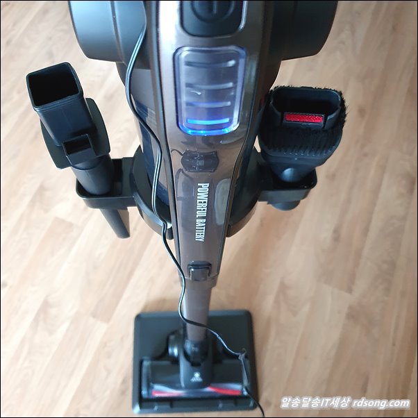 적당한 선에서 구입을 해 본 것인데 흡입력 낮으면 어떤가! 먼지 청소만 잘 되면 그뿐이지! 근데 중요한 것은 모터의 생명력이죠 얼마나 내구성이 있는지가 관건인데 어차피 무선청소기 소모품! 리튬이온 충전지가 장착되어 있는데 이것도 사용하면 충전이 잘 안되거나 뭔 언젠가는 문제가 생깁니다.