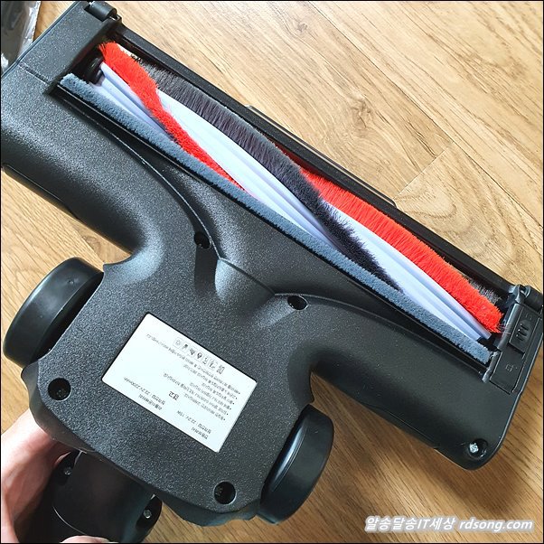 청소용 브러쉬 , 실제로 전원을 켜고 사용할 때 회전되어 바닥면을 청소하게 되죠. 제품마다 브러쉬 스타일이 조금 차이가 있긴 한데 , 회전하면서 바닥면의 먼지를 모조리 흡입 합니다.
