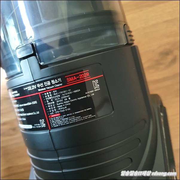 알토 무선청소기 22.2V 무선 진공청소기 본체 SMA-202R 제조연월 나와 있고 누가 수입했는지 적혀 있습니다.