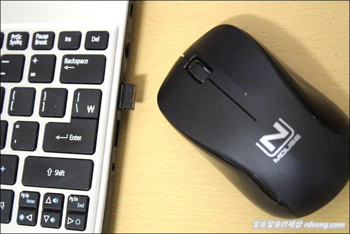 현재 사용중인 노트북에 스카이디지탈 NMouse W3 애슬론S 저소음 무선마우스를 연결해서 사용해 보니 마우스해상도 1000dpi 마우스 커서 포인트 위치 눌림도 좋고 아직까지는 괜춘했습니다