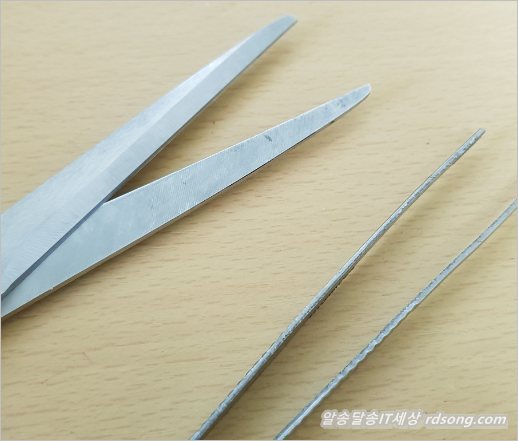 가위날 이용하여 힘의 강약 조절을 잘 하고 지렛대 방식(시계줄 부분)으로 오픈해야 하는데 잘 못하면 시계 뒷면에 스크래치 날수 있으므로 알아서 판단하시길!