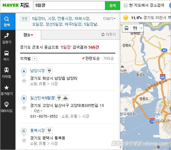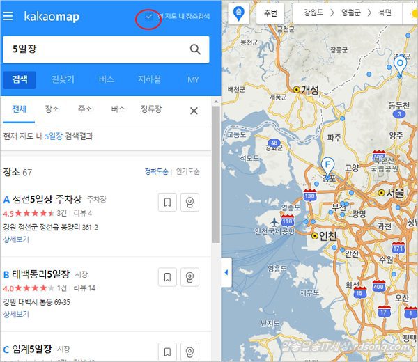 다음지도 daum map새로 바뀐 카카오맵 kakaomap 5일장 검색