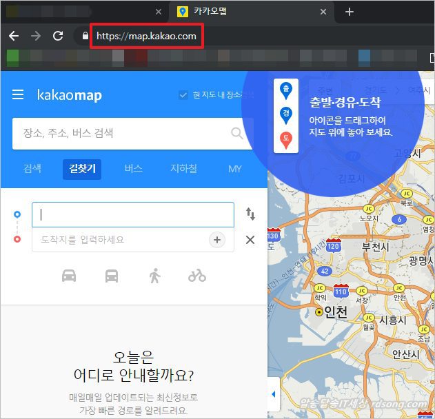 다음지도가 카카오맵 으로 새롭게 변신 했는데 예전에는 http 비보안 모드였는데 지금은 https 적용된 상태로 새로 업그레이드 되어 깔끔하고 상당히 좋아 졌습니다