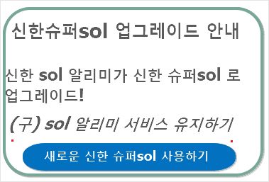 그런데 sol 알리미 기능 하나 쓰려고 모든 기능 활용 할 필요는 없어 보였는데 [ 새로운 신한 슈퍼 sol 사용하기 ] 해서 업그레이드 하면, 새로 가입 해야 합니다 과연 그렇게 까지 해야 할까싶기도 해서 과감히 sol 알리미 쓰지 않기로 결정 했습니다.