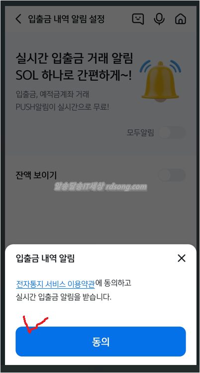 실시간 입출금 내역 알림 동의 해 주면 됩니다.