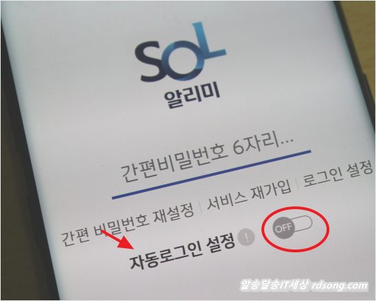 비밀번호 로그인 화면에 자동로그인 설정 기능이 생겼습니다 그런데 자동로그인 기능은 쓰는 사람 맘대로 이긴 하지만 다른 분이 내폰을 열어 sol 알리미를 실행하면 자동으로 로그인 되어 보안상 개인적으로 사용하지는 않습니다