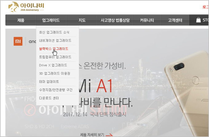 3. ‘블랙박스 업그레이드’ 메뉴에서 사용중인 제품을 검색한다