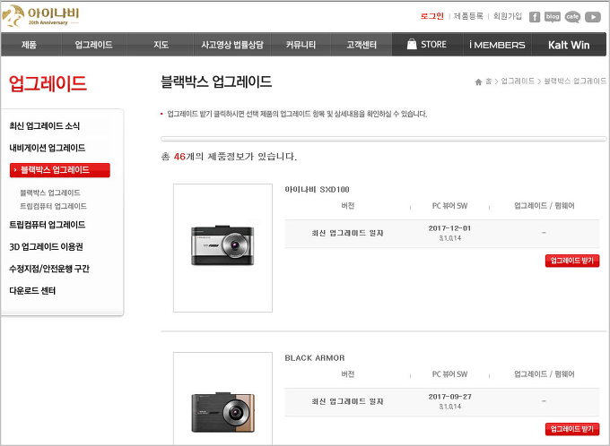 아이나비 홈피에서는 블랙박스 전용 pc플레이어 한참을 찾았는데 업그레이드 메뉴에서