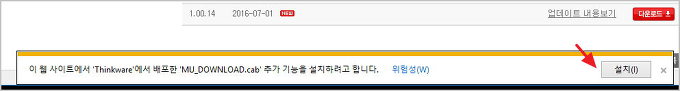 thinkware에서 배포한 MU_download.cab 추가기능 설치 하자
