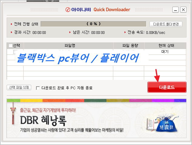 아이나비 Quick Downloader 가 열리고 다운로드 진행 하면 된다