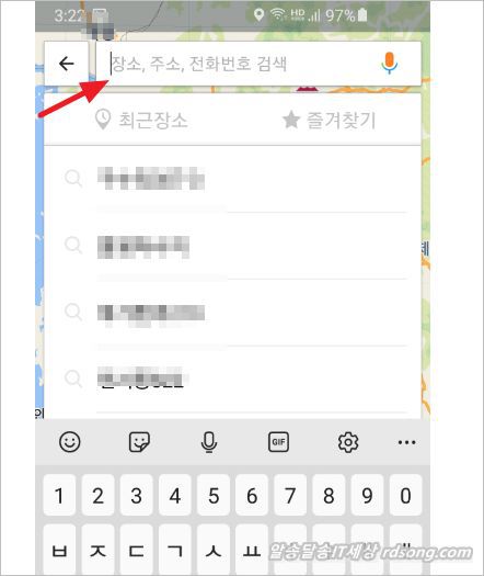 아틀란 경유지 추가 하면, 아래처럼 장소, 주소 , 전화번호검색 창에 최근장소 검색을 선택하거나 수동으로 입력하여 검색을 해야 합니다. 주행 경로 중에 어떤 포인트 경유지 거쳐서 샛길로 주행 할때 특히 경유지추가 하면 상당히 편리한데 그게 무진장 불편합니다.
