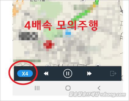 아틀란 내비게이션 모의주행 속도 1배속~ 4배속 8배속 빠르게 주행 되며 터치해서 배속 조절 하면 됩니다. 4배속 이상 빨리 주행 해도 됩니다