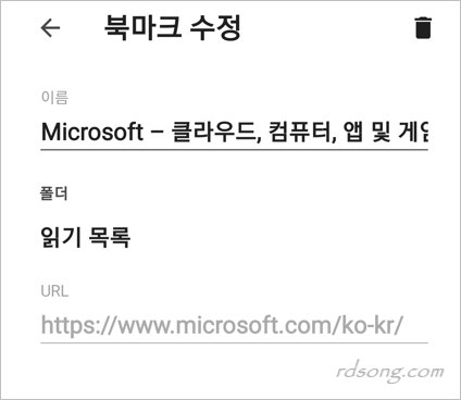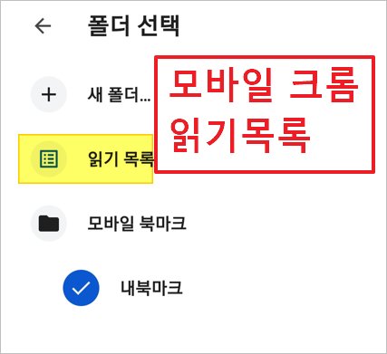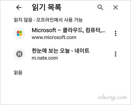 모바일 크롬 읽기목록 추가 삭제