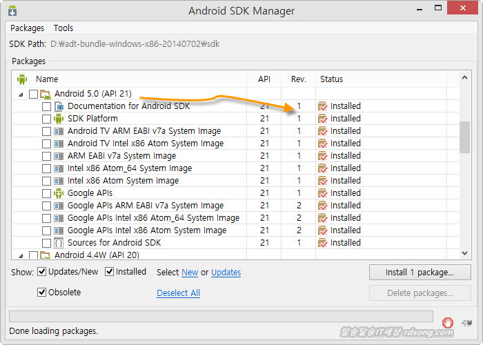 안드로이드 5.0 API21 SDK 메니져 패키지 설치▼