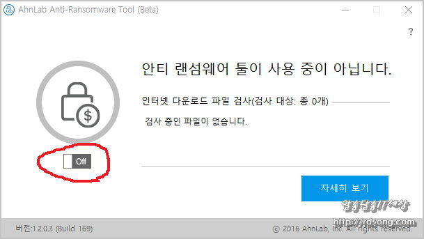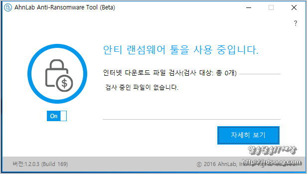 안티 랜섬웨어 툴 베타 버젼 1.2.0.3 ON / OFF