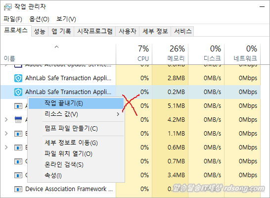 프로세서 종료하기위해’작업끝내기’를 시도해도 종료가 되지 않습니다 한편으로 참 잘 만들어 놨죠 그래야 안전하게 인터넷 뱅킹 처리 할수 있으니…
