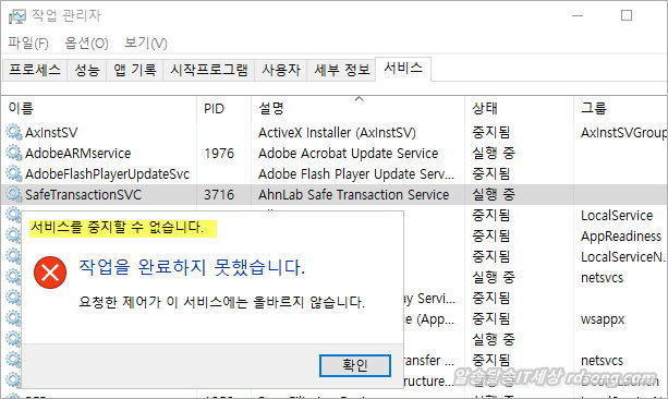 Safe TransactionSVC 서비스 중지 (ahnlab safe Transaction Service) 중지