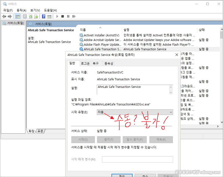 그럼 Ahnlap safe TransactionSVC 서비스를 수동으로 바꿔 볼까? 오잉~