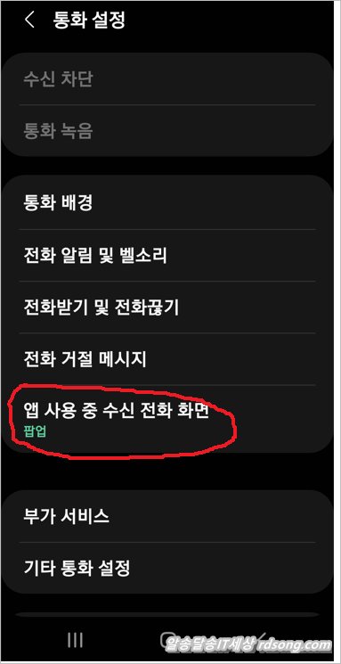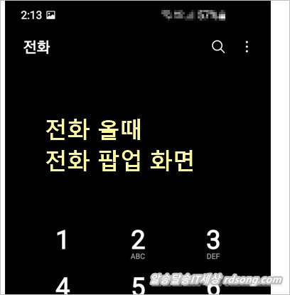 앱 사용 중일 때 전화 오면 화면 가리게 되어 ,전화 올때 수신 전화화면을 팝업 화면 형태 뜨도록 바꾸면 앱 사용중에 화면방해가 덜 됩니다.