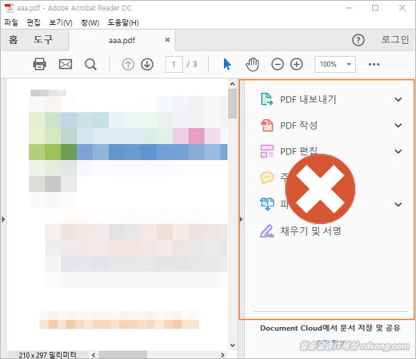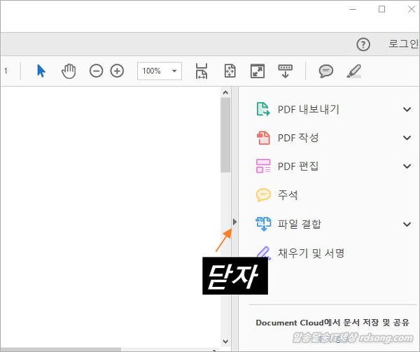 pdf문서를 여는 방법은 몇가지 있는데 adobe acrobat reader DC 로 열릴 때 우측의 도구창이 함께