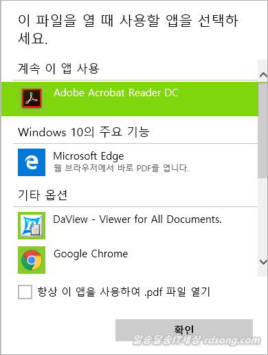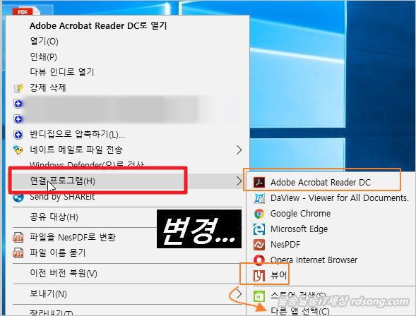 pdf를 열때 윈도우10의 기본 뷰어로 변경하는 방법은 간단합니다