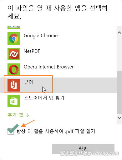 항상 이앱을 사용하여 .pdf 파일 열기 에