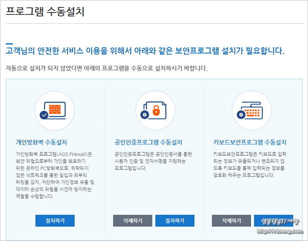 어카운트인포를 PC에서 이용하려면 역시 보안프로그램 설치를 해야 한다