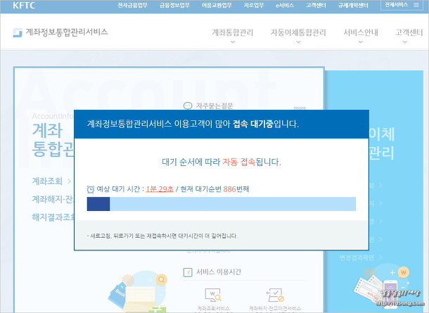 계좌정보통합관리서비스 시간은 오전 9시부터 22시까지 자동이체나 조회가 되며,