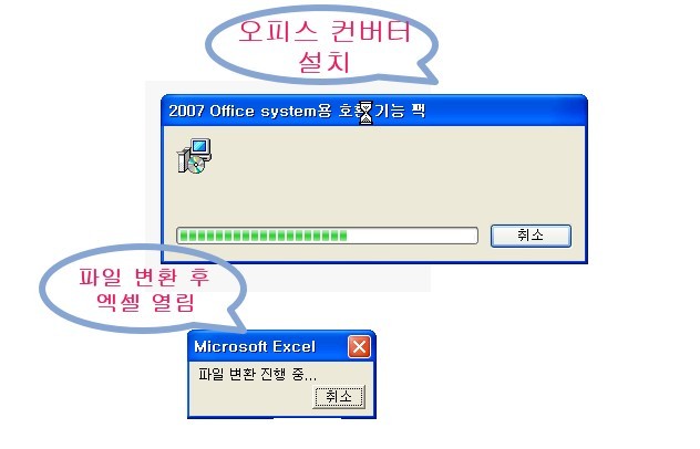 기본적으로 오피스의 서비스팩 SP1이상이 컴퓨터에 설치되어 있어야 변환기가 작동 하며 윈도우의 업데이트를 해주는 것을